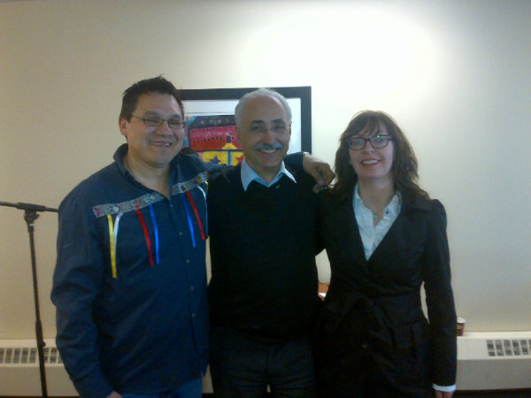 Dennis Bevington with Norbert and Jennifer Poitras at the closing of the Truth and Reconciliation Commission Office in Yellowknife.